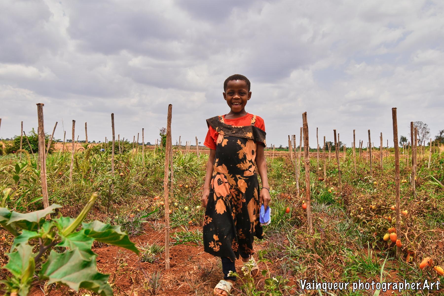 Esta (8) does maintenance work in their tomato garden on the outskirts of their home near the Nyarugusu river.