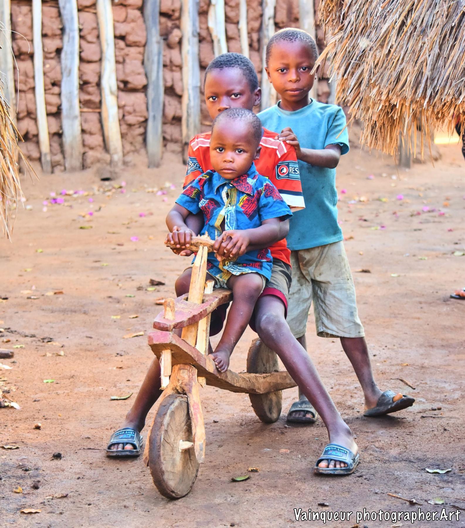Happy to meet these children of the same family with their means of transport out of wooden, it is a little funny even it is a thing to encourage so that it makes a movement of transport something and also it makes busy the children in this villages to play with and also for creativity has always been a key to any productive science field.